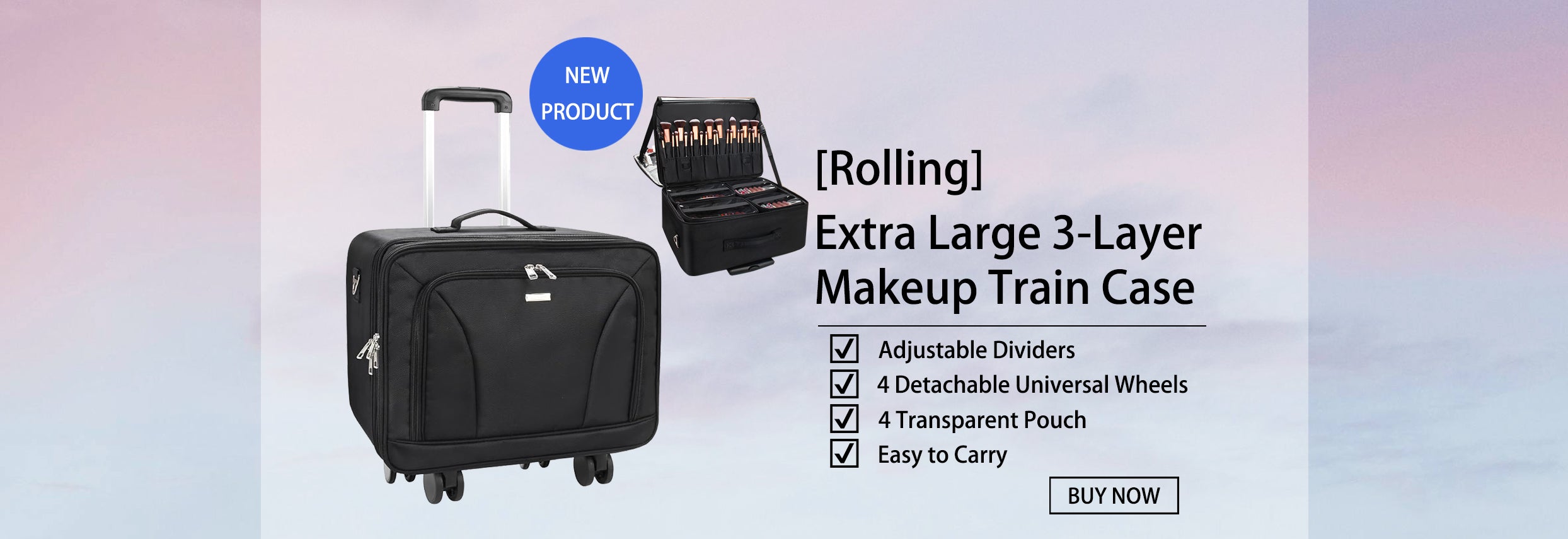 Relavel Rolling Makeup Case Professional Makeup Train Case Makeup Artist Travel Organizer 8 in 1 with Detachable Cosmetic Case and Dual Makeup Brush Case 4 Mini Bags and Wheels(Black,4-Pack) 8-IN-1...