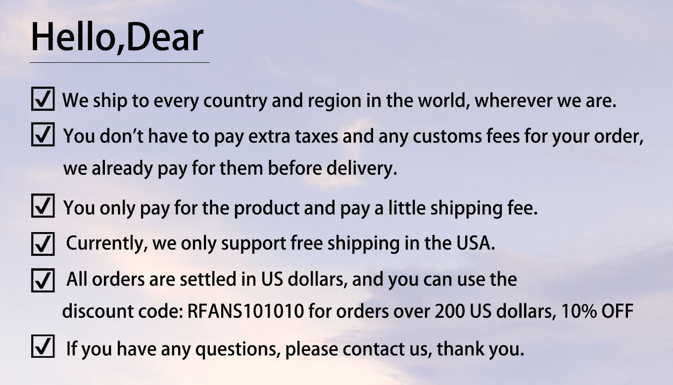 Tip: The store defaults to the US inventory, and for other countries, the local warehouse shall prevail. When placing an order, free shipping means the local stock is available.